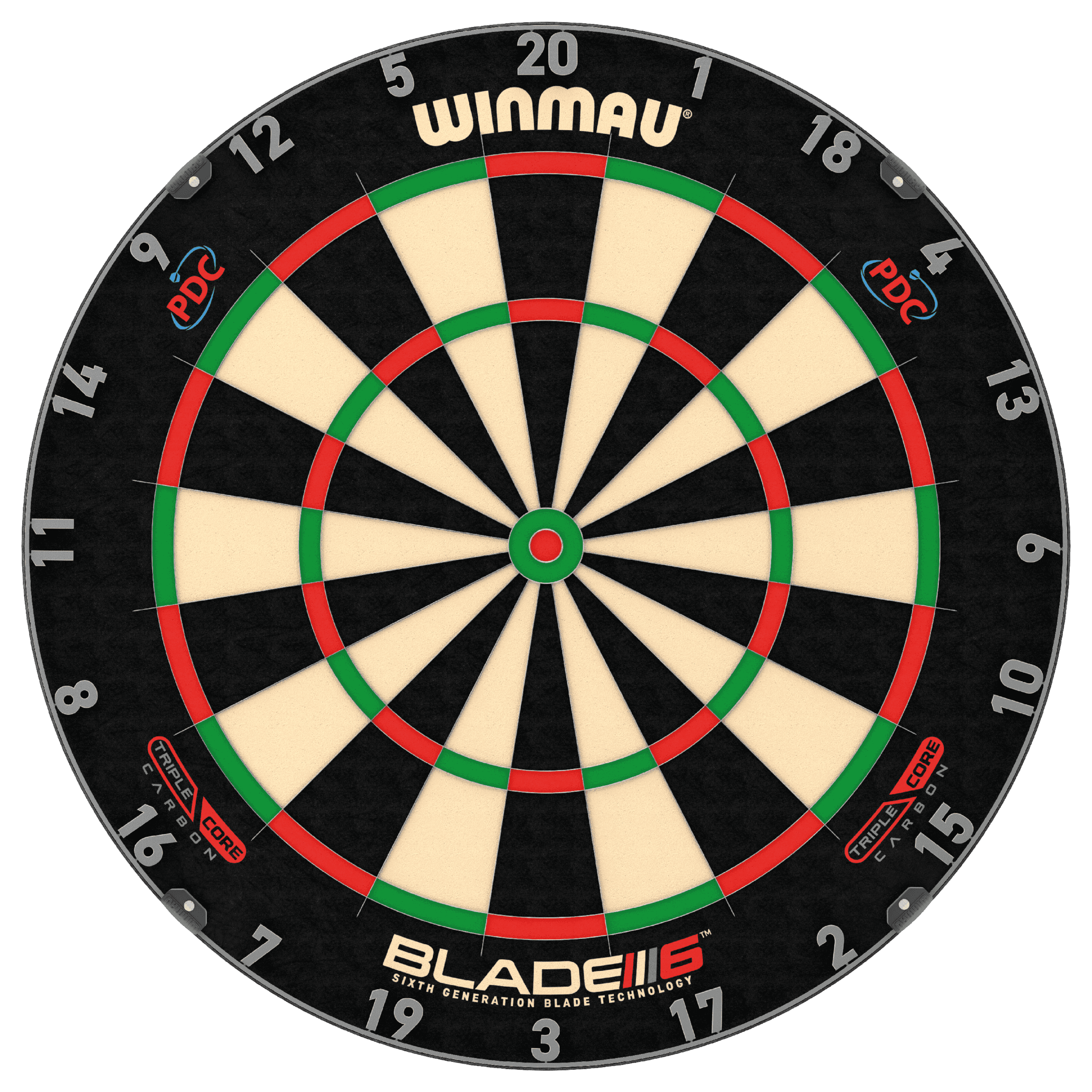 Winmau Blade 6 Triple Core är en darttavla i toppklass med teknik från sjätte generationens Blade-serie. Den är byggd för att ge en jämn och pålitlig spelupplevelse, med en trefaldig kärnkonstruktion som förbättrar både hållbarhet och grepp för pilarna. Den avancerade ”Density Control™”-tråden ger rätt fiberdensitet i varje zon, vilket gör att pilarna sitter bättre – särskilt i dubbel-, trippel- och bullseye-fälten.