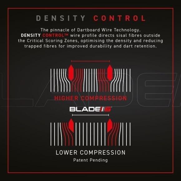 Den vinklade tråden på 60° minskar risken för studs och hjälper till att styra in pilarna i poängområdet. Bullseye-sektionen har 25 % tunnare tråd för ännu bättre precision. Med det justerbara Rota-Lock-systemet monteras tavlan snabbt och stabilt på de flesta väggar. Blade 6 Triple Core är tillverkad av östafrikansk sisal och godkänd för tävlingsspel enligt World Darts Federations regler.