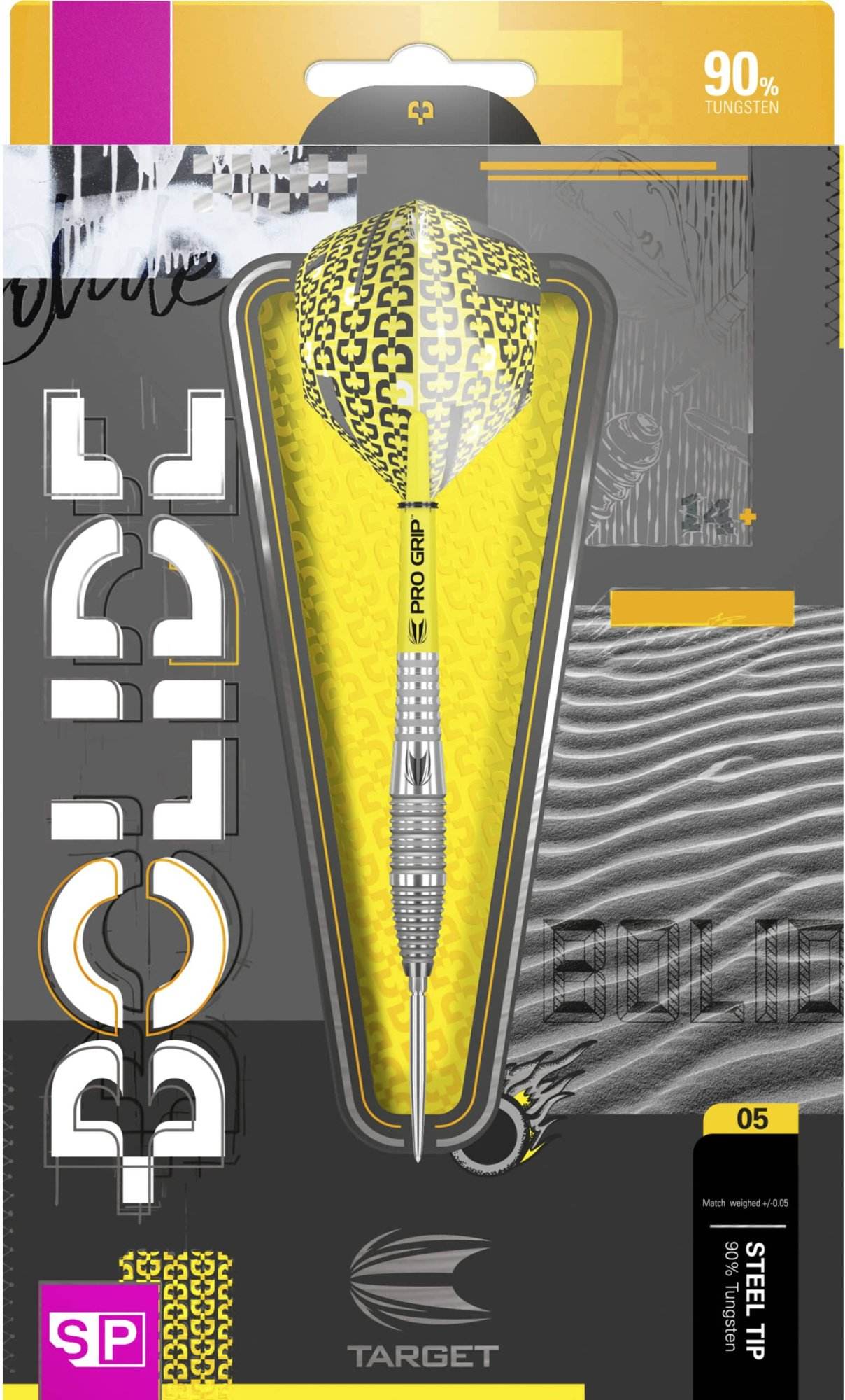 Target Bolide 05 90% SP Steel Tip är ett utmärkt val för dig som söker en slimmad dartpil med riktigt bra kontroll. Den är tillverkad i 90 % tungsten, vilket gör att profilen kan hållas smal utan att tumma på tyngden – perfekt för spelare som vill minimera blockerande pilar och maximera precision.